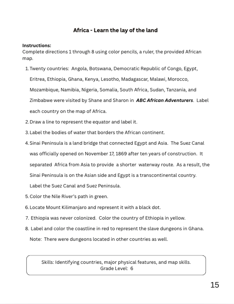 ABC African Adventures Workbook is designed as a companion to the ABC African Adventures book and Africana Learning Cards. This workbook features interactive activities inspired by Africa’s diverse cultures and landscapes. It's perfect for children from Kindergarten and beyond, it encourages creativity and educational fun adaptable activities. Enhance your child’s educational journey across the African continent!